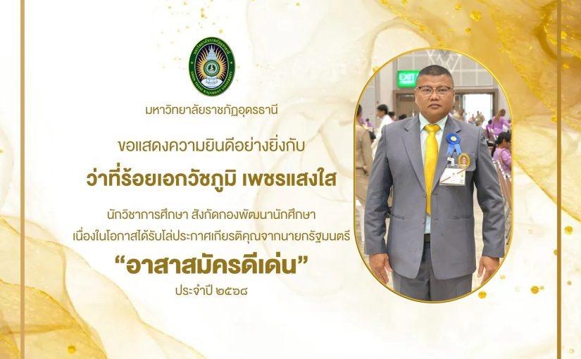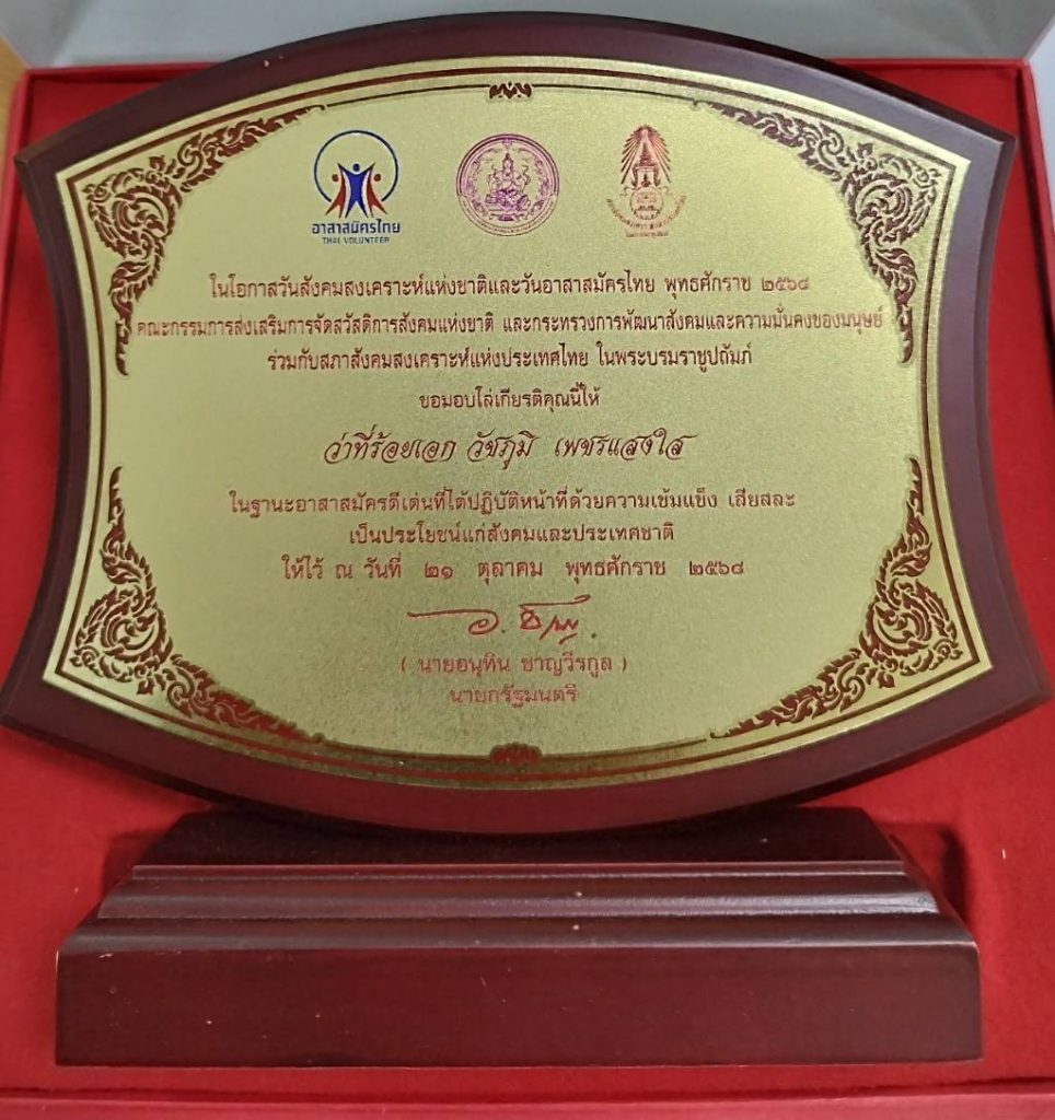 งานจิตอาสา กองพัฒนานักศักษา ขอแสดงความยินดีกับว่าที่ร้อยเอกวัชภูมิ เพชรแสงใส นักวิชาการศึกษา สกัดกองพัฒนานักศึกษา ในโอกาสได้รับโล่ประกาศเกียรติคุณจากนายกรัฐมนตรี “อาสาสมัครดีเด่น”ประดับประเทศ ประจำปี 2568