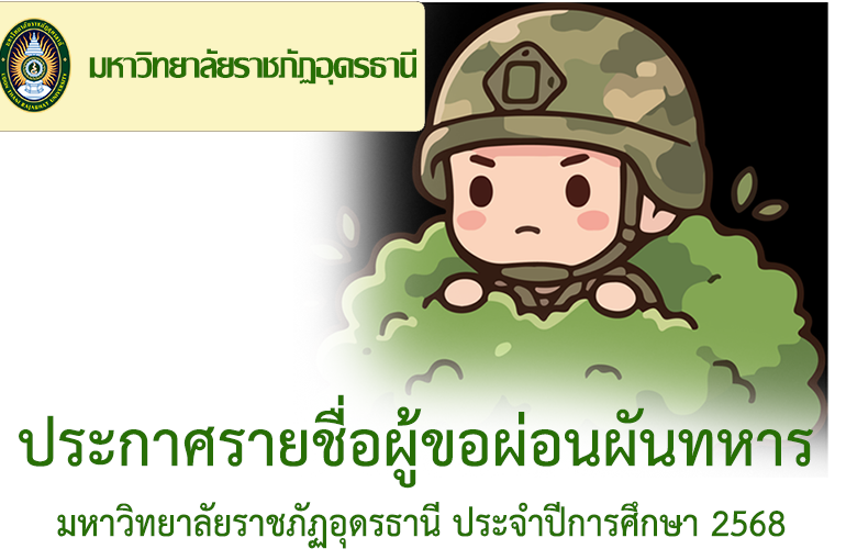 ประกาศรายชื่อผ่อนผันทหาร มหาวิทยาลัยราชภัฏอุดรธานี ปีการศึกษา 2568