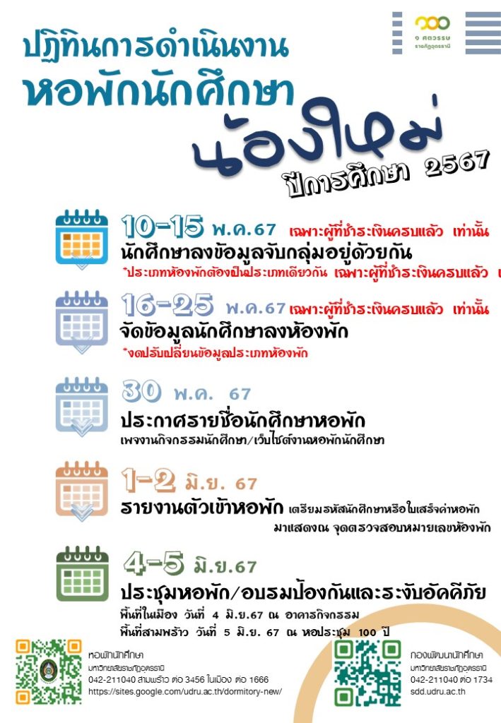 *กำหนดการอาจมีการเปลี่ยนแปลงตามความเหมาะสม ให้นักศึกษาติดตามประกาศก่อนวันรายงานตัวเข้าหอพักอีกครั้ง