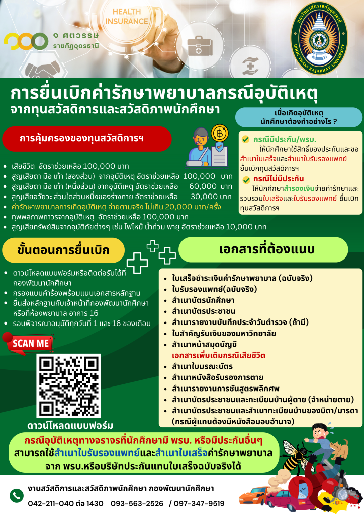 แนวทางการเบิกค่ารักษาพยาบาล กรณีนักศึกษาเกิดอุบัติเหตุ จากกองทุนสวัสดิการและสวัสดิภาพนักศึกษา