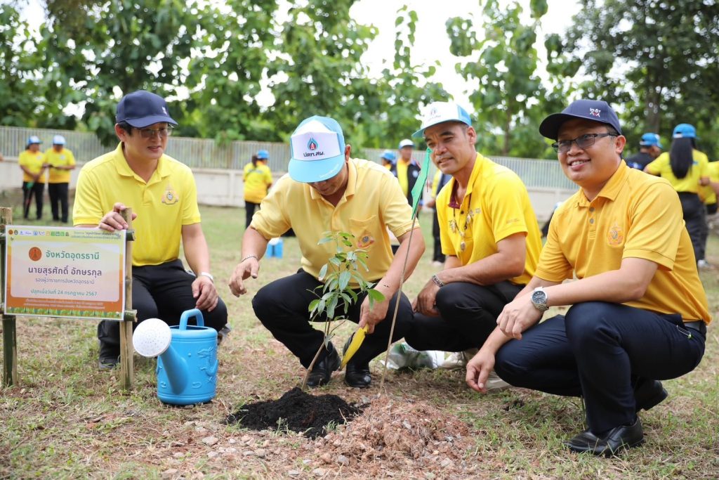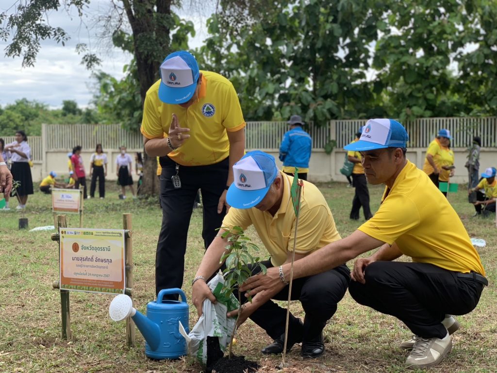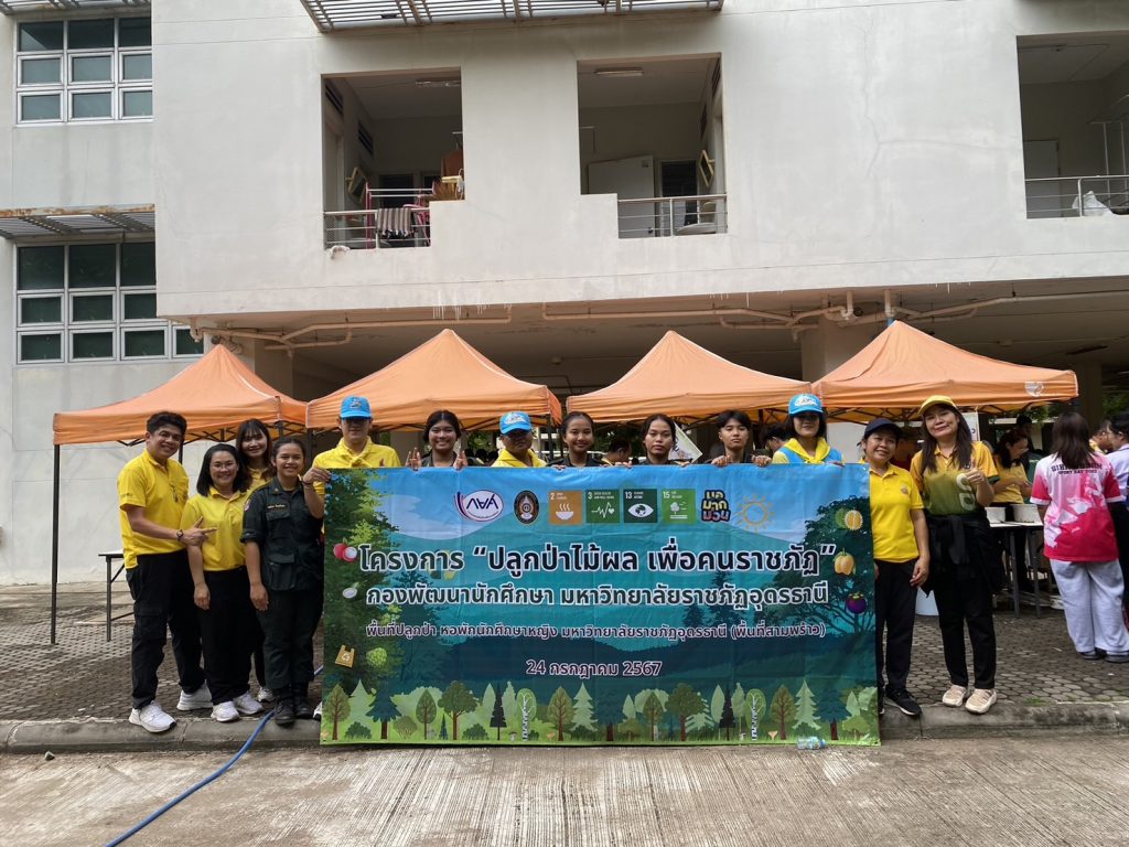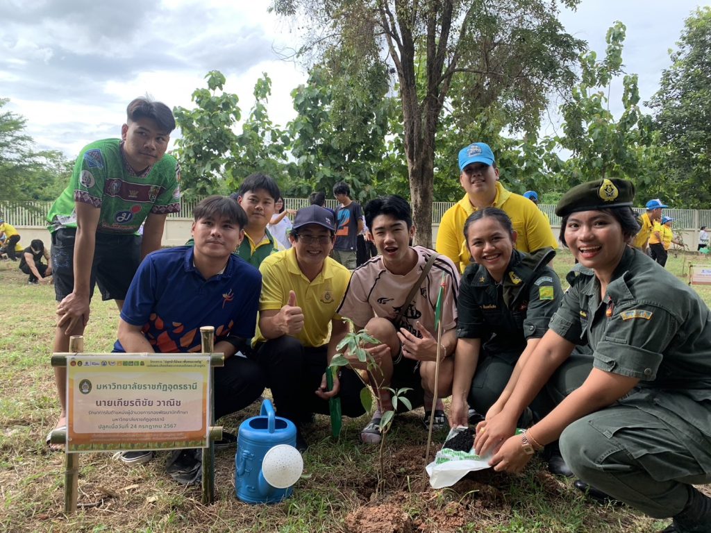 วันที่ 24 กรกฎาคม 2567 นายสุรศักดิ์ อักษรกุล รองผู้ว่าราชการจังหวัดอุดรธานี กล่าวเปิดโครงการ “ปลูกไม้ผล เพื่อคนราชภัฏ” เพื่อเฉลิมพระเกียรติพระบาทสมเด็จพระเจ้าอยู่หัวฯ เนื่องในโอกาสเฉลิมพระชนมพรรษา 6 รอบ 72 พรรษา ณ พื้นที่ปลูกป่า หอพักนักศึกษา มหาวิทยาลัยราชภัฏอุดรธานี ศูนย์สามพร้าว นายเกียรติชัย วาณิช รักษาการในตำแหน่งผู้อำนวยการ กองพัฒนานักศึกษา