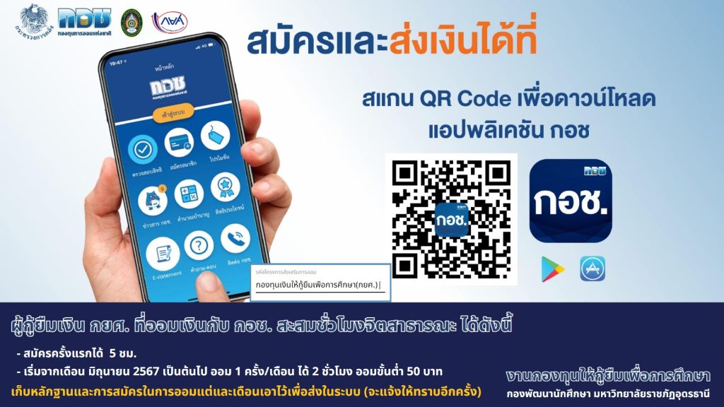 โครงการ ออม กับ กอช. สะสมชั่วโมงบำเพ็ญประโยชน์เพื่อกู้ยืมเงิน กยศ. ปี 2568 สมัครครั้งแรกได้ 5 ชั่วโมง ออมได้ทุกเดือน ฝาก 1 ครั้งต่อเดือน ได้ 2 ชั่วโมง เก็บหลักฐานไว้ส่งข้อมูลเข้าระบบเมื่อมีการประชาสัมพันธ์