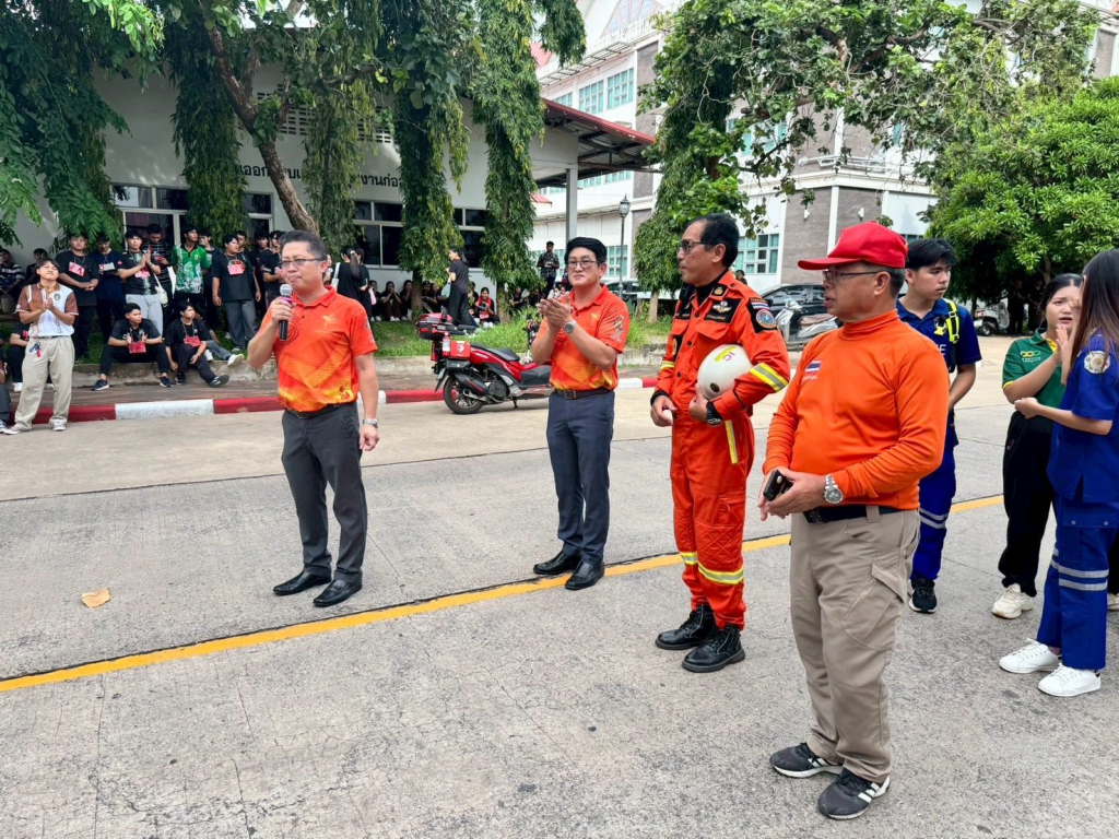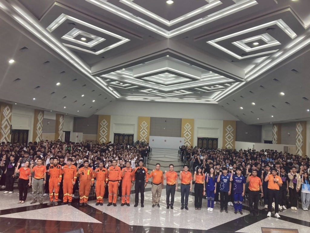 วันที่ 12 มิถุนายน 2568 เวลา 12.00 – 16.30 น. กองพัฒนานักศึกษา มหาวิทยาลัยราชภัฏอุดรธานี จัดกิจกรรมอบรมทักษะการเอาตัวรอดในสภาวะฉุกเฉินและการป้องกันอัคคีภัยในหอพักนักศึกษาโดยใช้เครื่องมือวิศวกรสังคม ผศ.ดร.อิทธิพล สิงห์คำ รองอธิการบดี เป็นประธานในพิธีเปิดโครงการ มีนักศึกษาหอพักหญิง และนักศึกษาหอพักชายเข้ารับการอบรมจำนวน 1,000 คน โดยได้รับความอนุเคราะห์จากฝ่ายป้องกันและบรรเทาสาธารณภัย เทศบาลนครอุดรธานี เป็นวิทยากรถ่ายทอดความรู้ความเข้าใจพื้นฐานในเรื่อง การป้องกันอัคคีภัย และการอพยพหนีภัย ทั้งนี้ ในการอบรมดังกล่าว ได้มีการฝึกซ้อมสถานการณ์จำลองเหตุอัคคีภัย เพื่อให้นักศึกษาเข้าใจขั้นตอนการอพยพหนีภัยที่ถูกต้องและปลอดภัยร่วมกัน