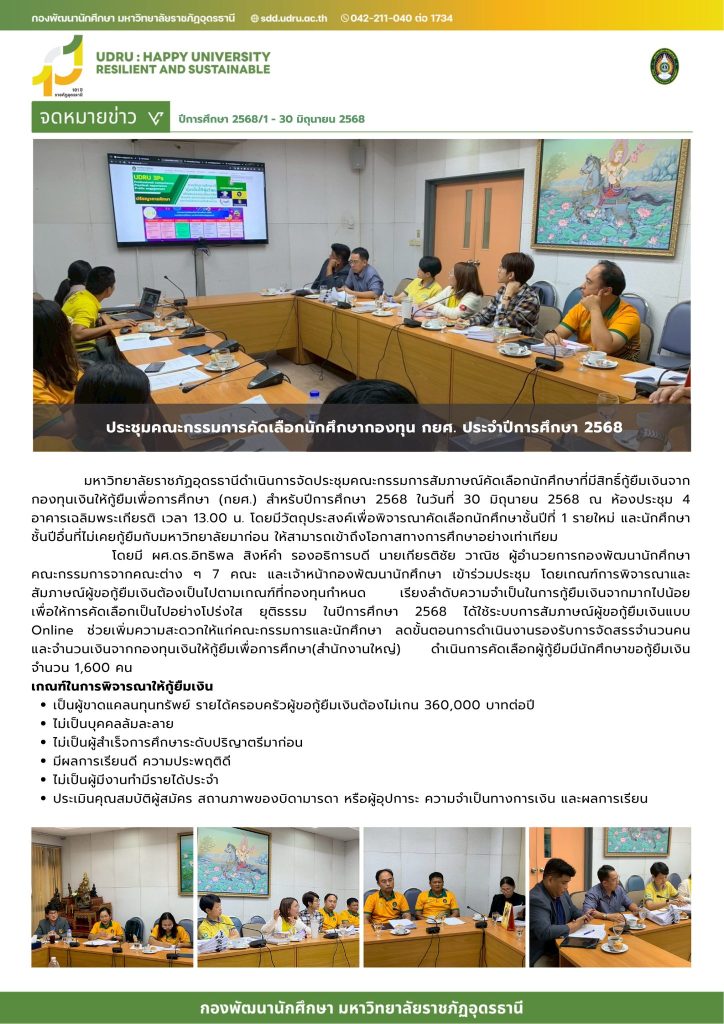 📌 การสัมภาษณ์คัดเลือกนักศึกษากองทุน กยศ. มหาวิทยาลัยราชภัฏอุดรธานี ปี 2568