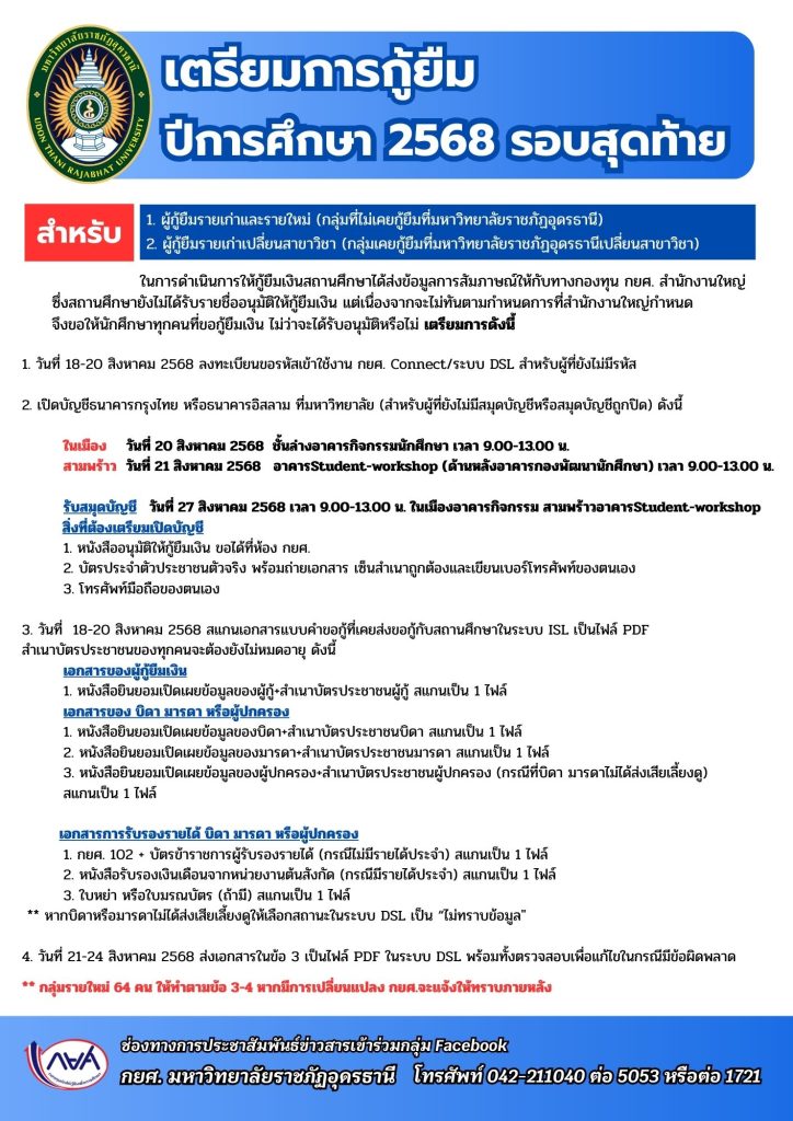 การเตรียมการกู้ยืม ปีการศึกษา 2568 รอบสุดท้าย