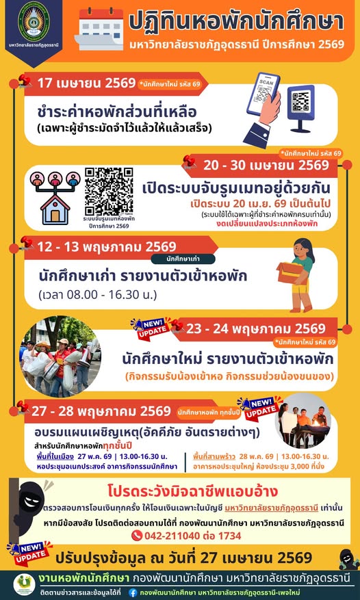 ปฏิทินหอพักนักศึกษา ปีการศึกษา 2569