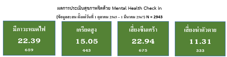 ผลการประเมินสุขภาพจิต 1 ตุลาคม 2565 – 1 มีนาคม 2567