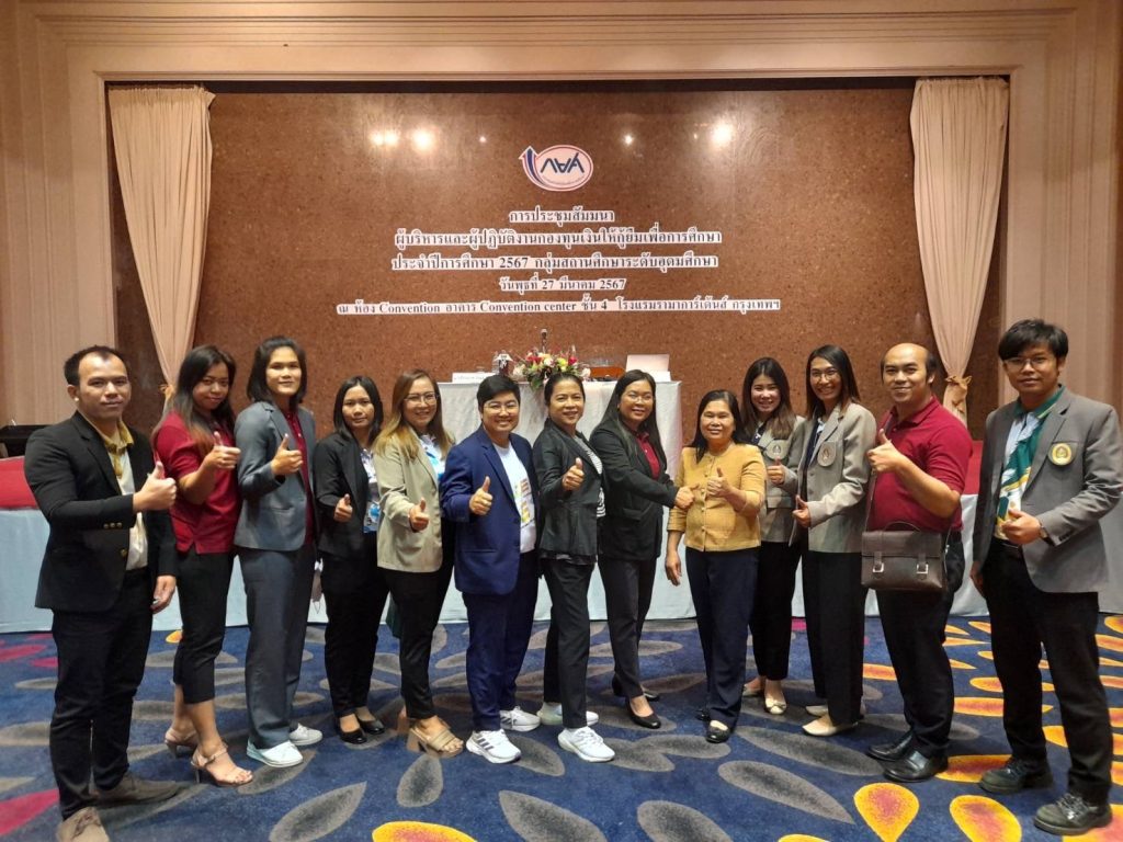 วันที่ 27 มีนาคม 2567 เวลา 08.30 น. กองทุนเงินให้กู้ยืมเพื่อการศึกษา กำหนดจัดประชุมสัมมนาผู้บริหารและผู้ปฏิบัติงานกองทุนกู้ยืมเพื่อการศึกษา ประจำปี 2567 กลุ่มสถานศึกษาระดับอุดมศึกษา ณ ห้อง Convention อาคาร Convention center ชั้น 4 โรงแรมรามากาเด้นส์ กรุงเทพ ผู้ปฏิบัติงานฯนำโดยนางจิตตาภัทร์ ซื่อไกลกุลธวัช และนางสาวจิราพร เพริศแก้ว เข้าร่วมประชุมดังกล่าว เพื่อรับฟังบรรยายพิเศษจาก ผู้จัดการกองทุนเงินให้กู้ยืมเพื่อการศึกษา นายชัยณรงค์ กัจฉปานันทย์ ฟังบรรยายจาก นางสาวจารุลักษณ์ เรืองสุวรรณ เลขาธิการคณะกรรมการก็องทุนการออมแห่งชาติ และฟังเสวนา เสริมความเข้าใจในการให้กู้ยืมในปีการศึกษา 2567 ต่อไป