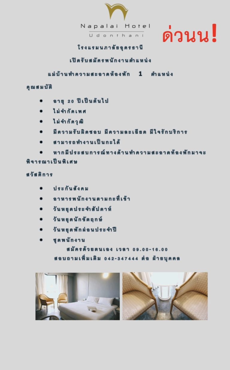 โรงแรมนภาลัยอุดรธานี รับสมัครพนักงาน