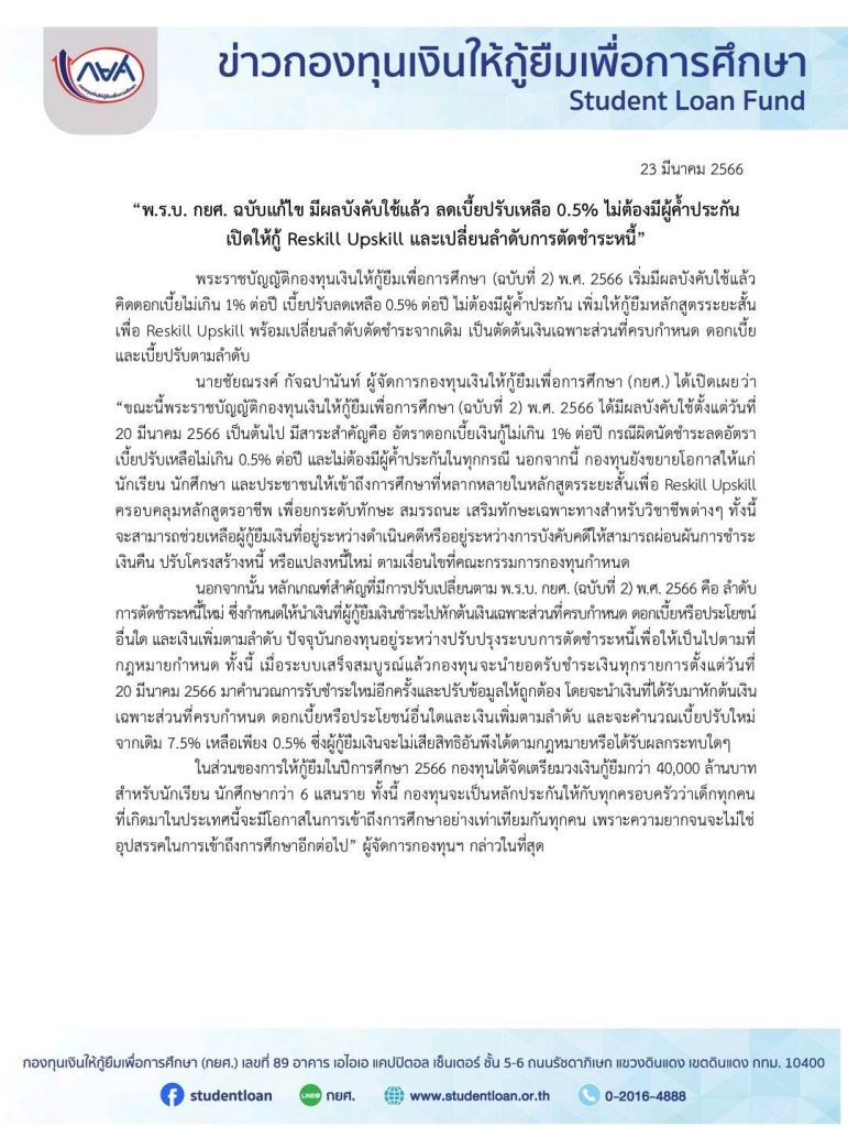 ข่าวดี พ.ร.บ. กยศ. (ฉบับที่ 2) เริ่มมีผลบังคับใช้แล้ว