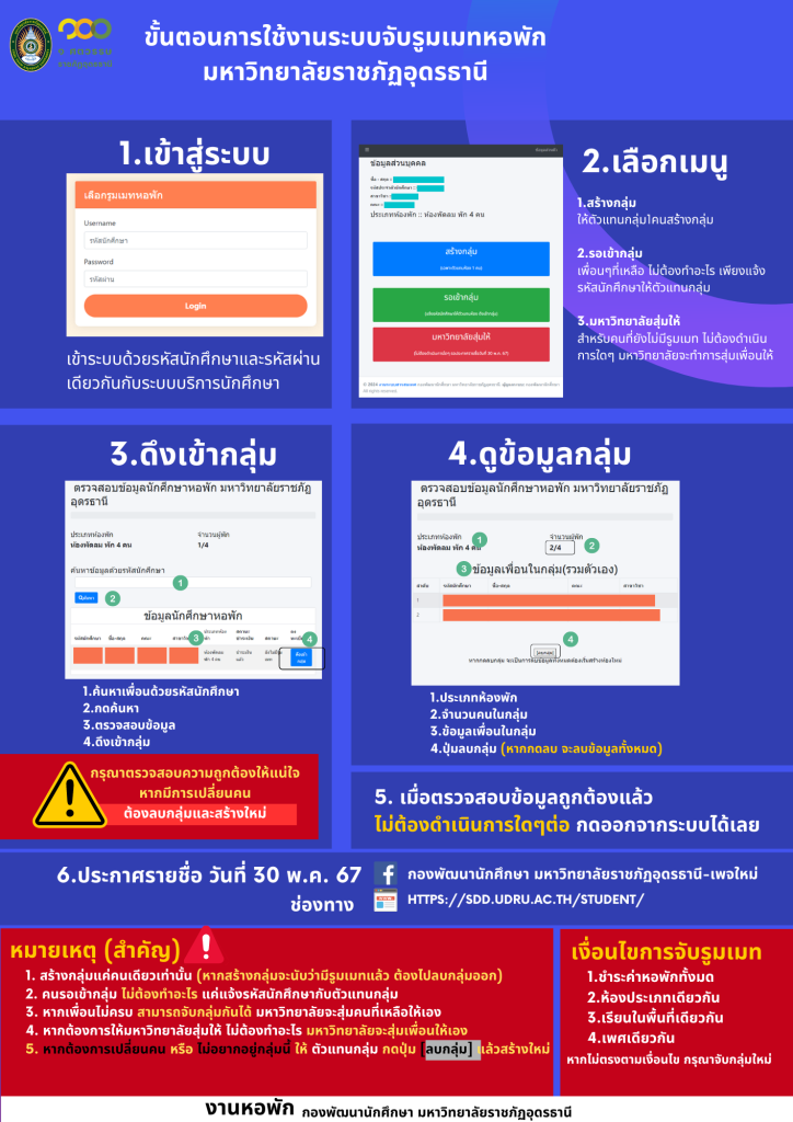 ระบบจับคู่รูมเมทอพัก มหาวิทยาลัยราชภัฏอุดรธานี